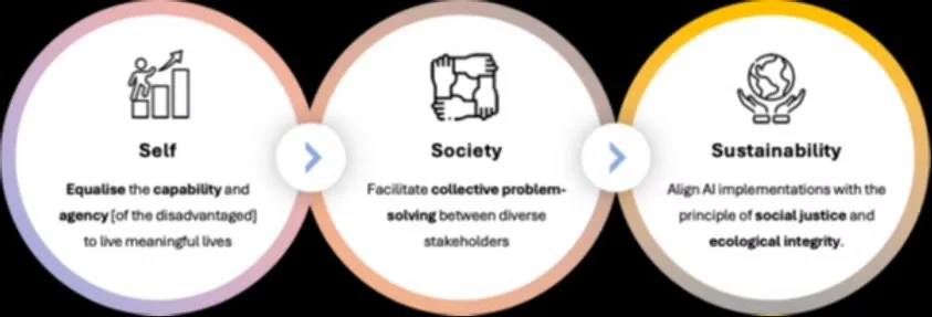 2. Social emancipation: Prosperity must go beyond superficial empowerment. AI should redistribute power, knowledge, and resources, helping marginalised groups shape technology rather than adapt passively to it.