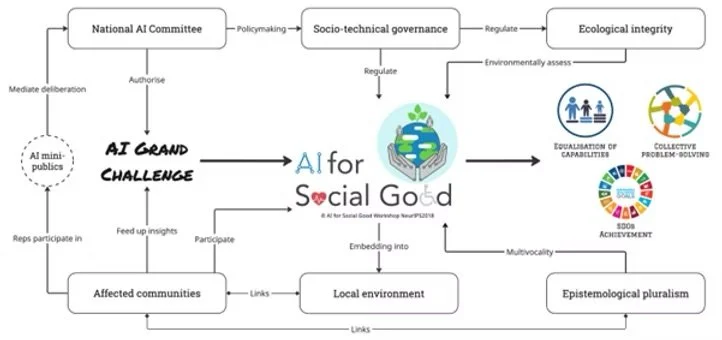 In short, this framework envisions AI as an enabling power for social emancipation, ecological sustainability, and multivocal governance.